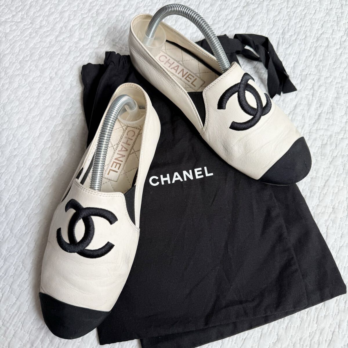 - CHANEL シャネル ココマーク バイカラー ラムレザー スリッポン ローファー 36 1/2C 23.5cm レディース ブラック ホワイト