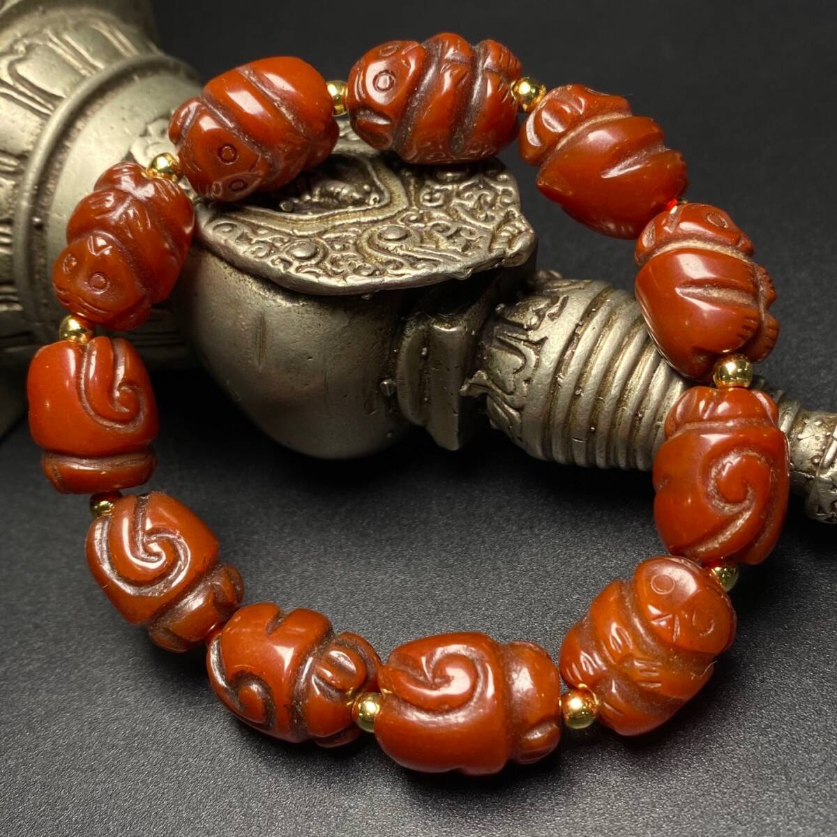 - 『館蔵珍品 瑪瑙製 細密彫 猴子チェーン 根付 裝身具』稀少珍蔵品 古賞物 貴重物品 収蔵品 中国古美術 時代物 古董品