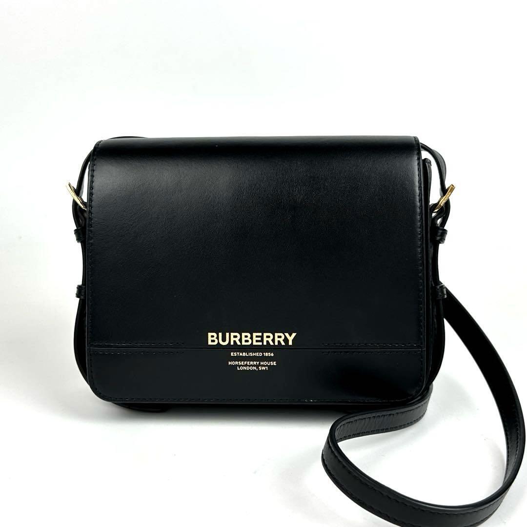 - 極美品●BURBERRY バーバリー ショルダーバッグ ロゴ グレース スモール 斜め掛け レザー 黒色 ブラック フォーマル 希少 男女兼用 現行品