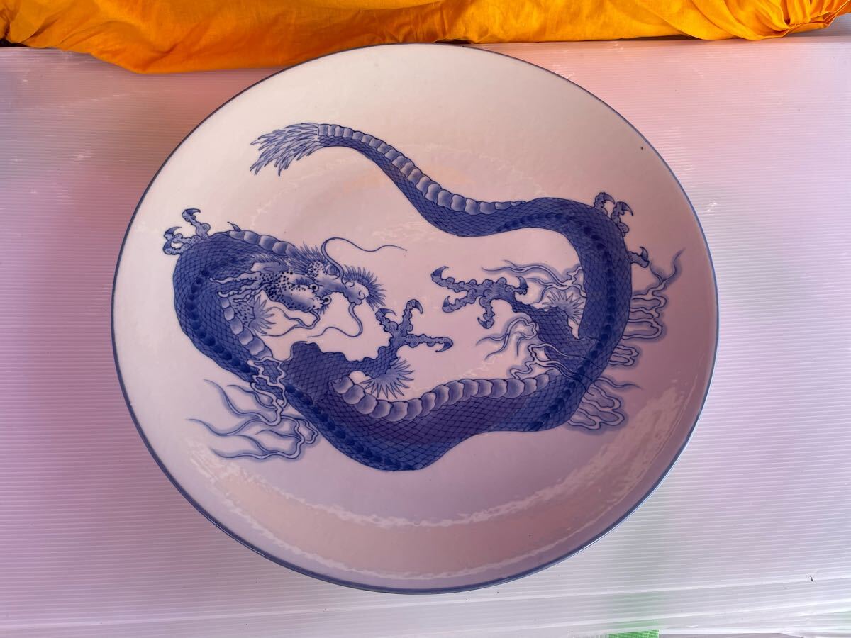- 飾り皿 大皿 染付 景徳鎮製 青花龍文 大皿 40cm 装飾用 中国美術