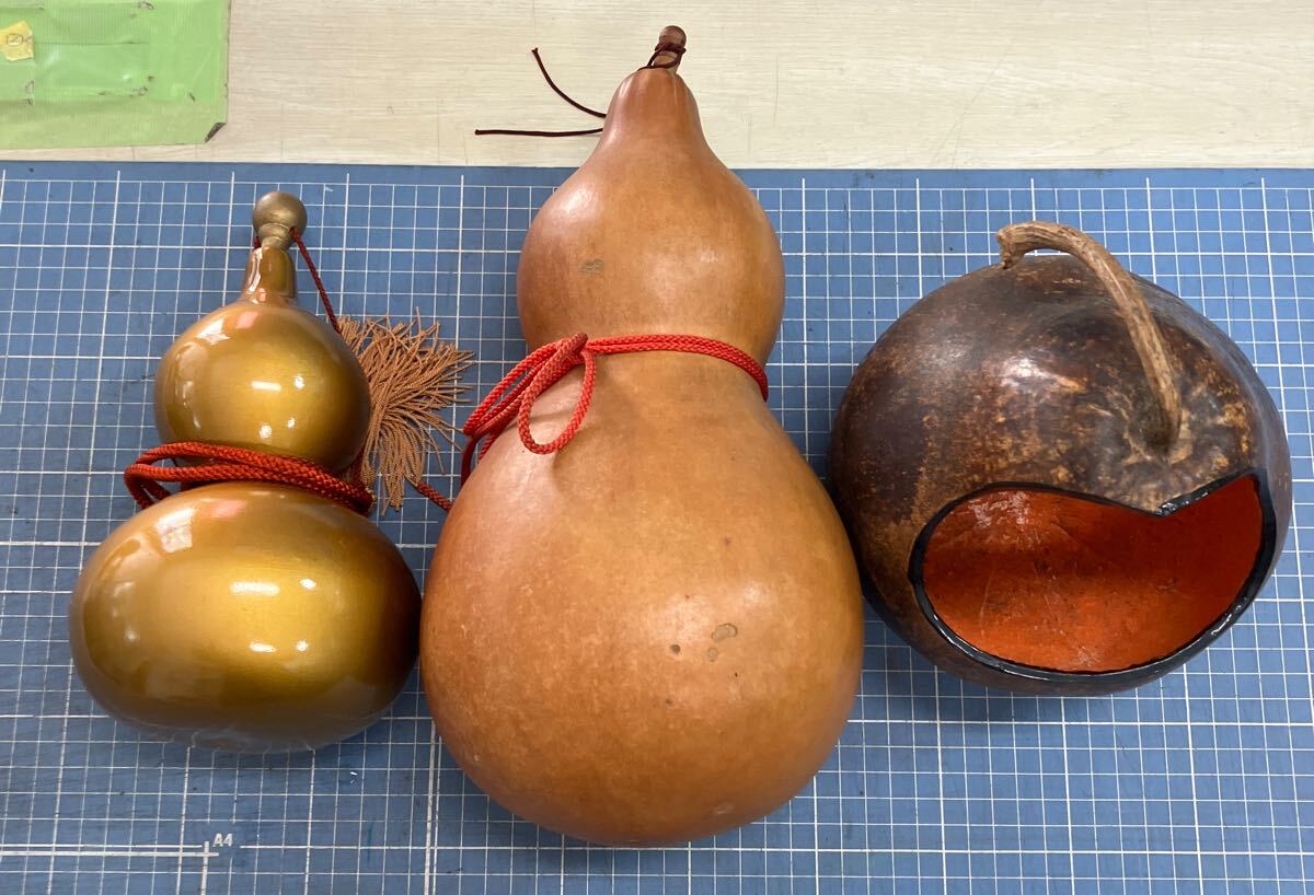 - 【ひょうたん 夕顔 時代物 3点セット】縁起物 風水 ふくべ細工 インテリア 昭和レトロ オブジェ【B1】0827