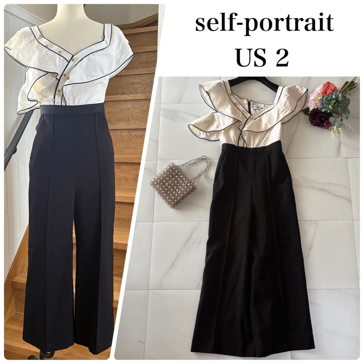 - セルフポートレート セルフポートレイト サロペット フリル 白黒 オールインワン