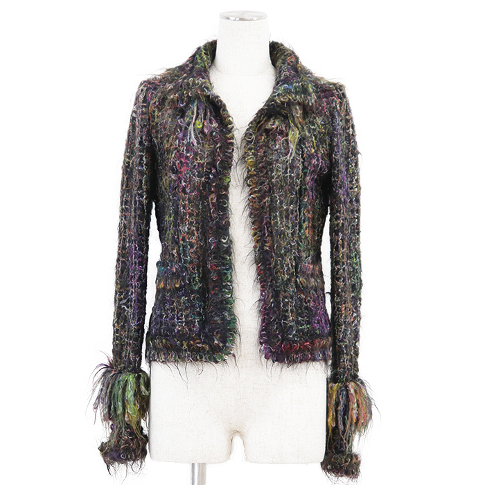 - 【極美品】CHANEL シャネル ジャケット 03A P22059 モヘアブレンド フリンジ COCOマーク ボタン アウター レディース 38 マルチカラー 仏製