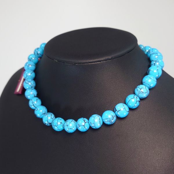 > 【希少】 ターコイズ トルコ石 SV925 留め具 ネックレス 11.8mm〜12.2mm 重さ59.8g シルバー 925 K250821305A