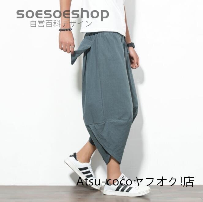 - 夏新作サルエルパンツ メンズ ワイドパンツ ボトムス チノパンツ 麻パン ジョガーパンツ 七分丈 イージーパンツ 涼しい M~5XL