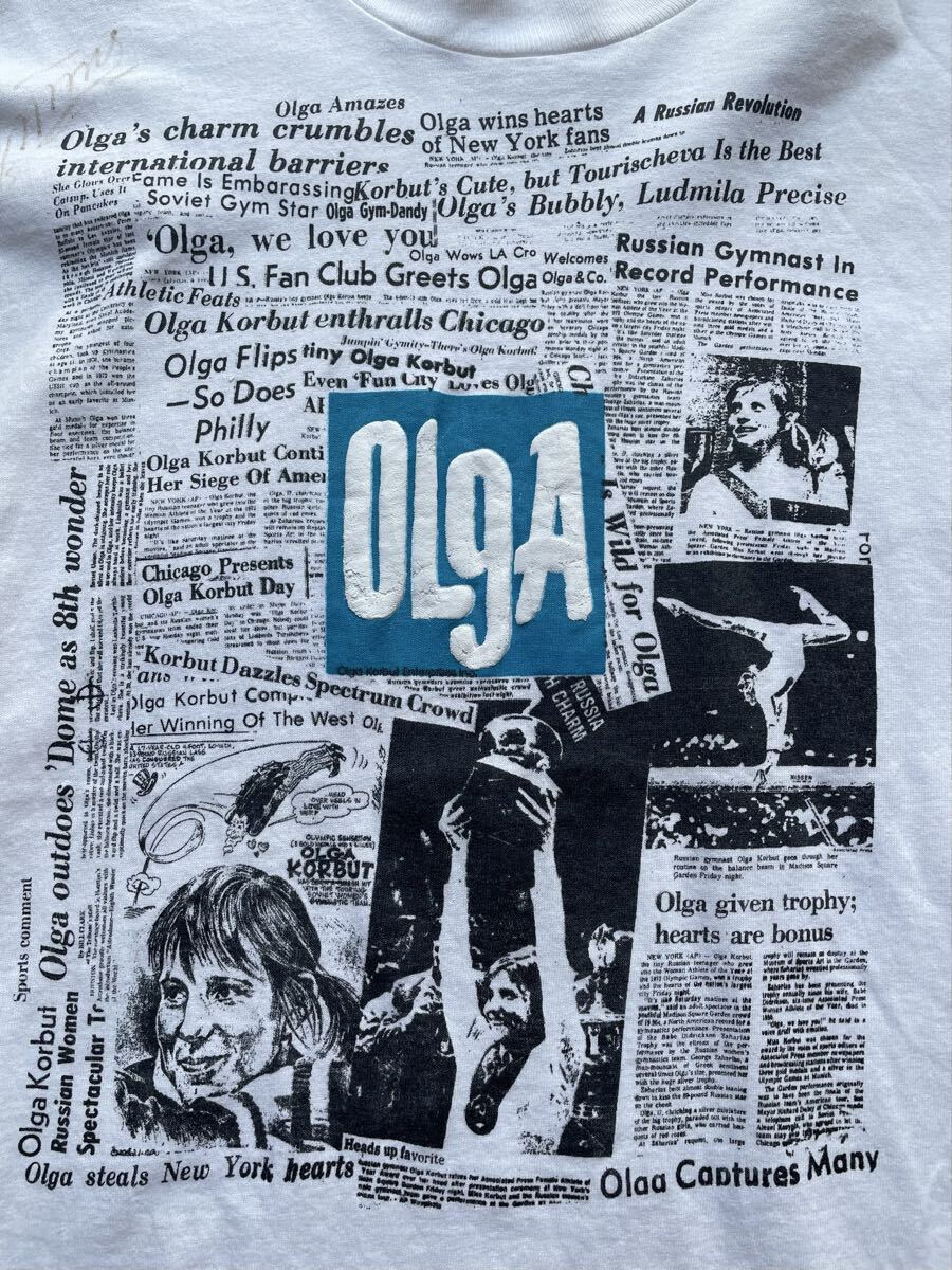 - 90s 1990s 90年代 オルガ コルブト ソビエト連邦 体操選手 サイン 新聞記事 プリント ヴィンテージ 古着 Tシャツ レトロ olga korbut