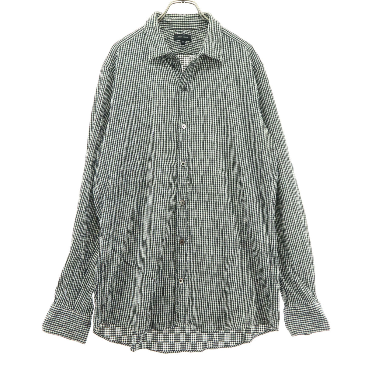 美品 JOSEPH HOMME ジョゼフオム ギンガムチェック柄 長袖 コットンシャツ 52 ブラック系 メンズ拍卖
