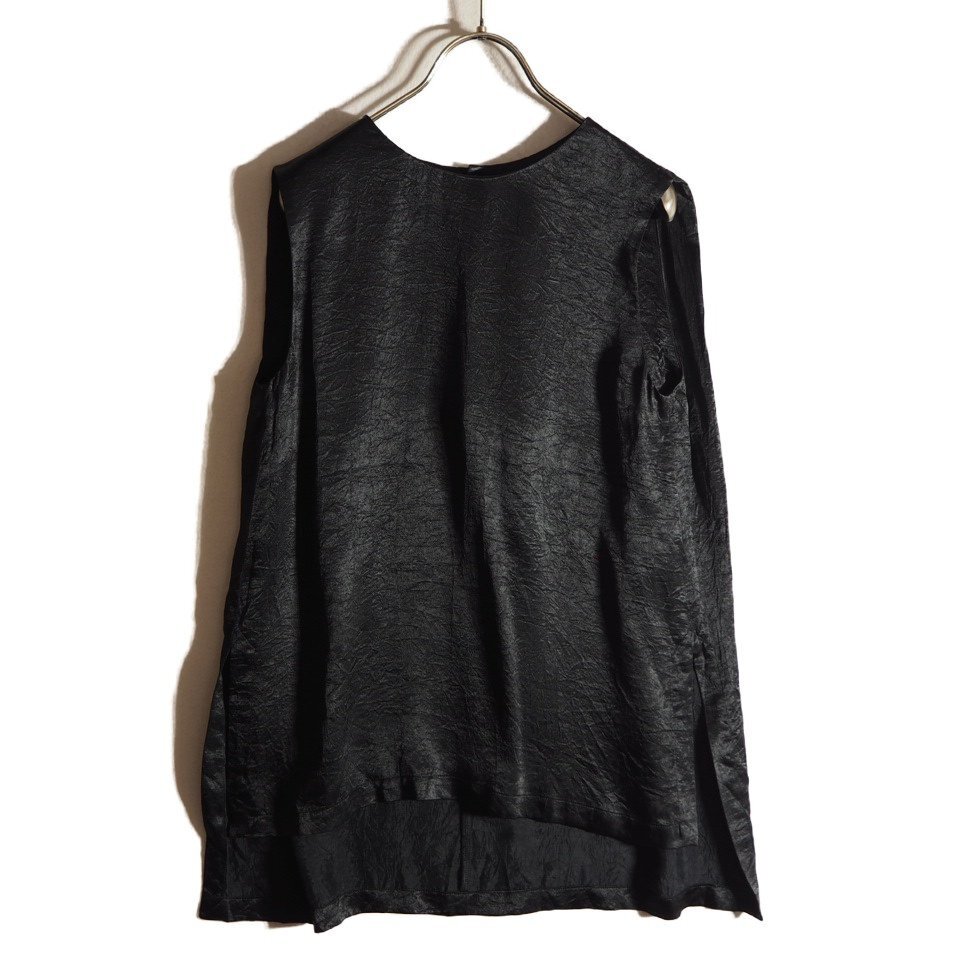> R1451f9 ▼Curensology カレンソロジー▼ サテン ノースリーブ ブラウス ブラック F / アセテート プルオーバー トップス 黒 春夏