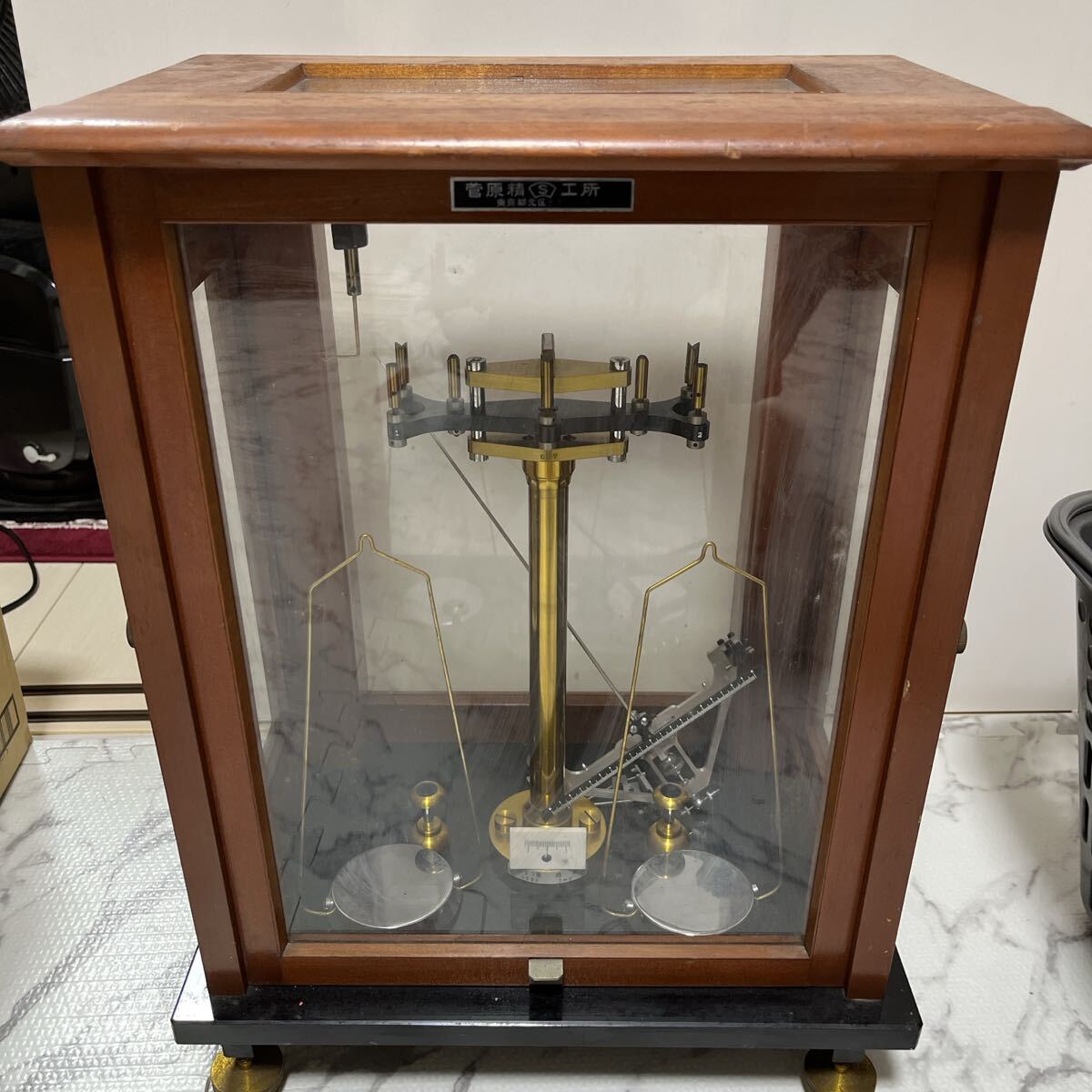 - 天秤 はかり 木製枠 ガラスケース 当時物 アンティーク レトロ 菅原精工所