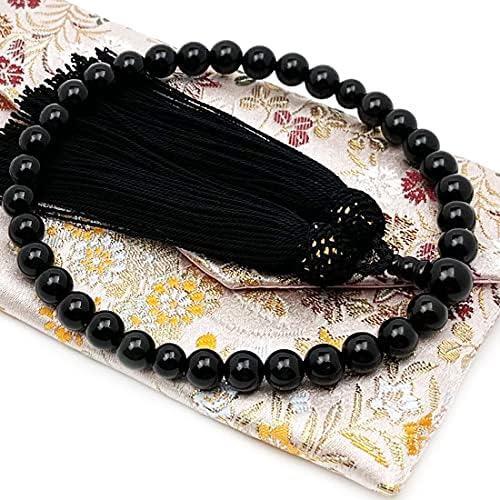 - 永善念珠屋 数珠 女性用( 黒オニキス 7mm玉 頭付房)【西陣織 数珠袋付き】全ての宗派で使える じゅず 女性 念珠 手作り