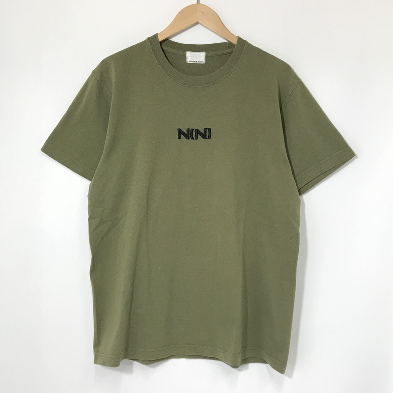 > NUMBER (N)INE ナンバーナイン 半袖 Tシャツ カットソー ロゴ 刺繍 TEE カジュアル 古着 メンズ Mサイズ相当 カーキ トップス A14071◆