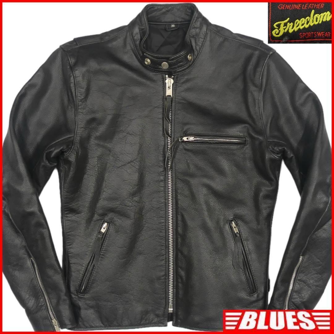 > 即決★Freedom★メンズS レザーライダースジャケット フリーダム 36 黒 本革 シングル 本皮 パンクロック ライディング ツーリング