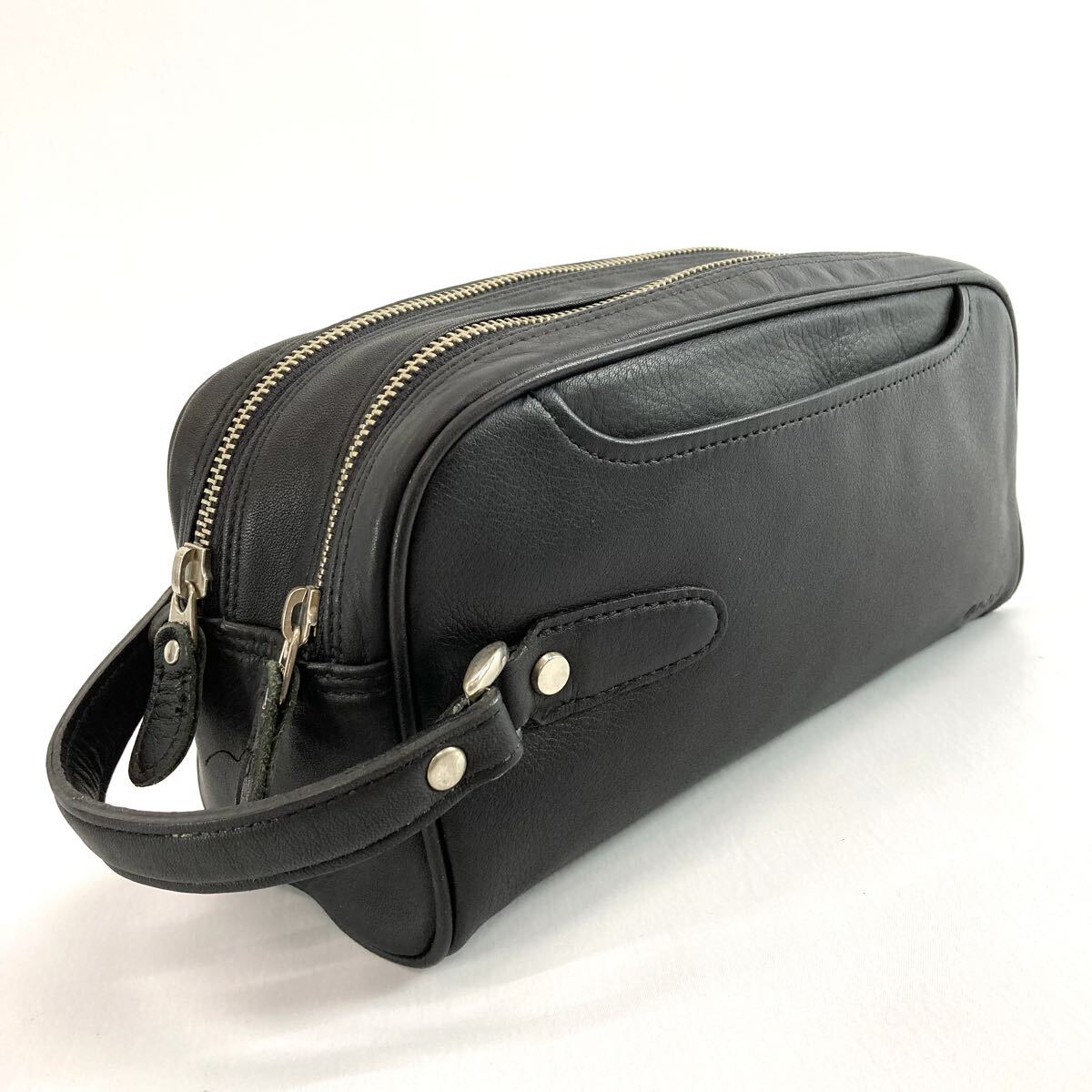 - LUGGAGE AOKI ラゲージアオキ 青木鞄 クラッチバッグ ダブルジップ ファスナー ブラックレザー メンズ 紳士鞄
