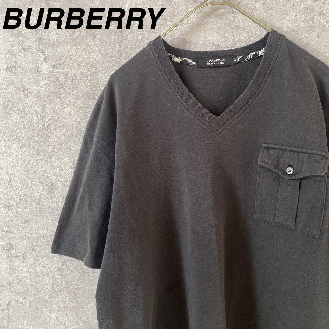 - BURBERRY ブラックレーベル Vネック Tシャツ 半袖 黒 サイズ3