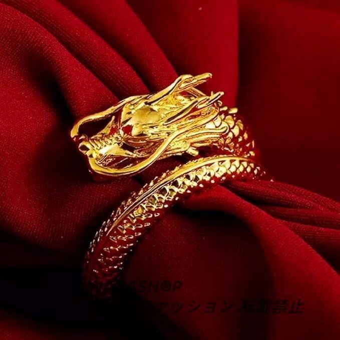 - 龍 フリーサイズリング ゴールドカラー ドラゴン 竜 リング 幸運 風水 指輪 シンプル 指輪 お洒落アイテム メンズ レディース 男女兼用