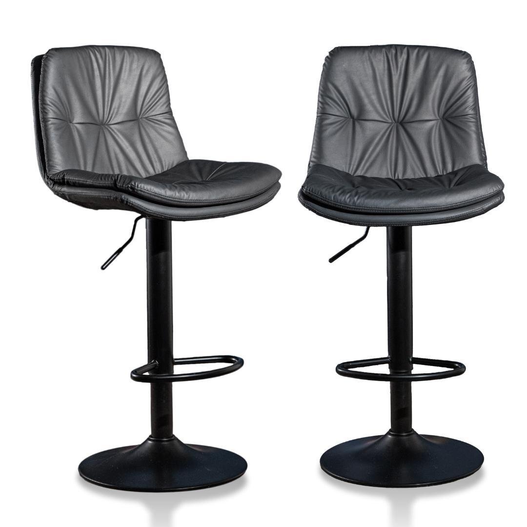 - カウンターチェア 2脚セットブラック 回転式 背もたれつき 高さ調節可能