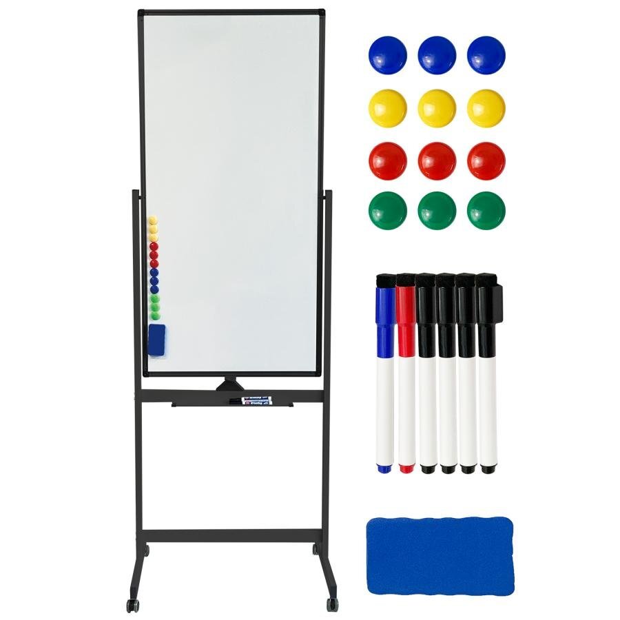 - ホワイトボード 脚付き 1200×600 両面 回転式 スチール キャスター付き ホワイトボードマーカー付属 ブラック
