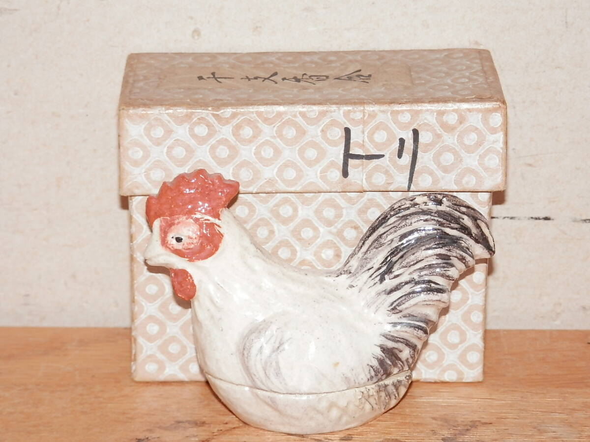 - 干支香合#54 酉年 8x3.7x6.2cm 無銘 鶏型(検索 茶道具仏具香蓋合子小物入れ陶器ニワトリ鳥