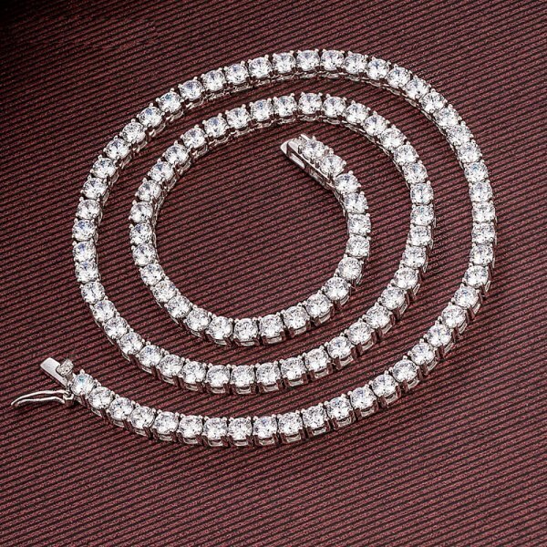 - 高級 925シルバー3mmフル高炭素ダイヤモンド5Aジルコンテニスネックレス、48cm、残り時間4日までに最初に入札すると開始価格で購入可能 Kn