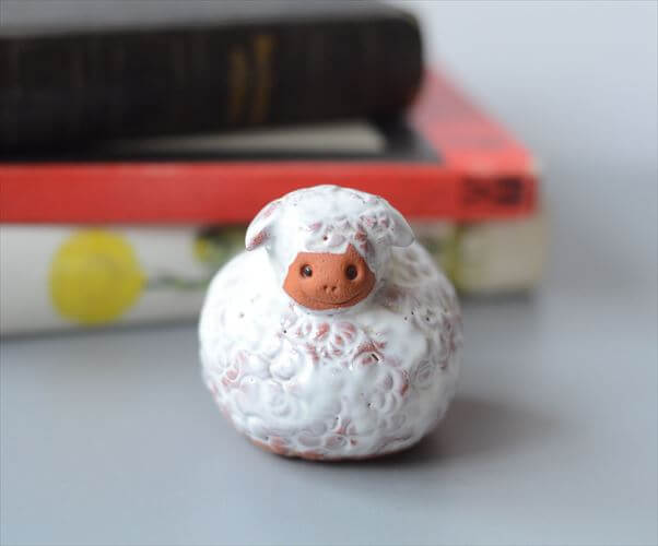 - ドイツから 丸みがかわいい陶器の羊 オブジェ 置物 フィギュア インテリア ヴィンテージ アンティーク_ig4616