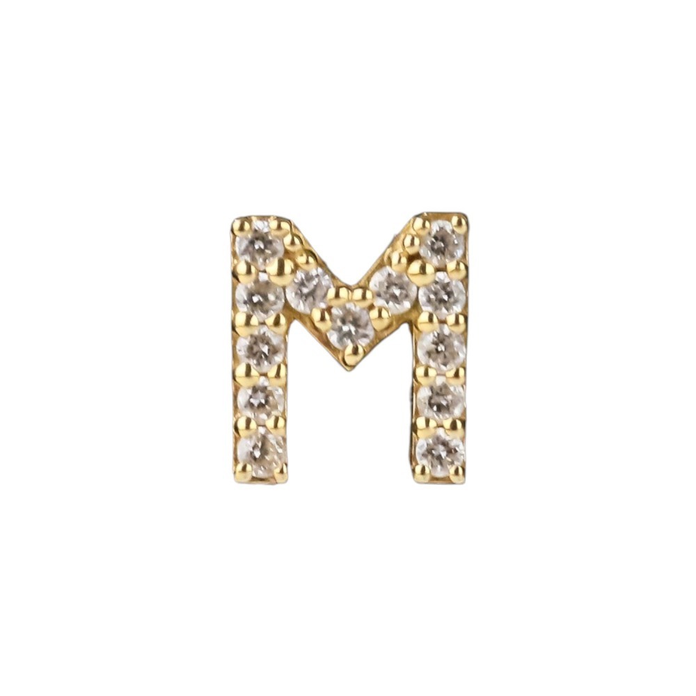 - 美品 STAR JEWELRY スタージュエリー TINY STUDS INITIAL M D0.02ct K18 ピアス イエローゴールド