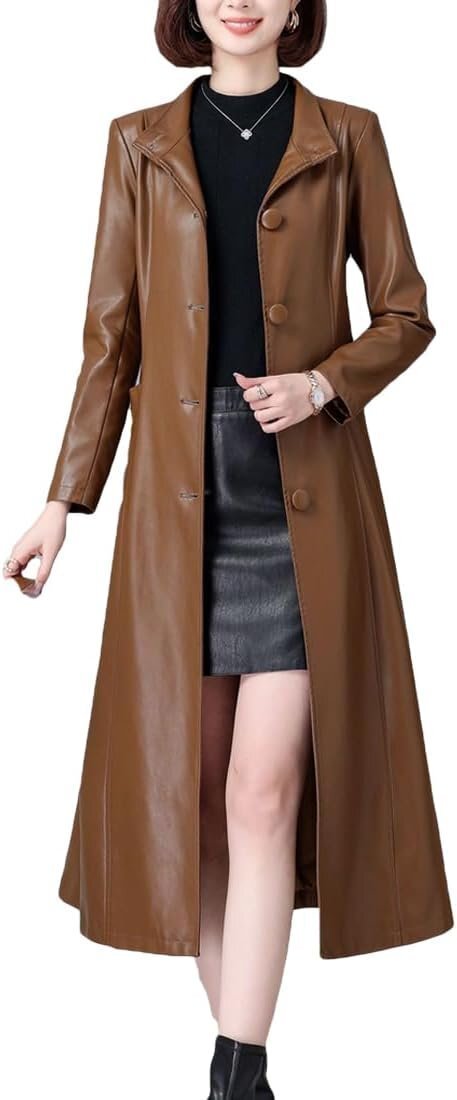 - レザー トレンチコート ラムレザー ロングコート アウター 革コート バイクジャケット 大きいサイズ 着痩せ効果 体型カバー ロングアウター