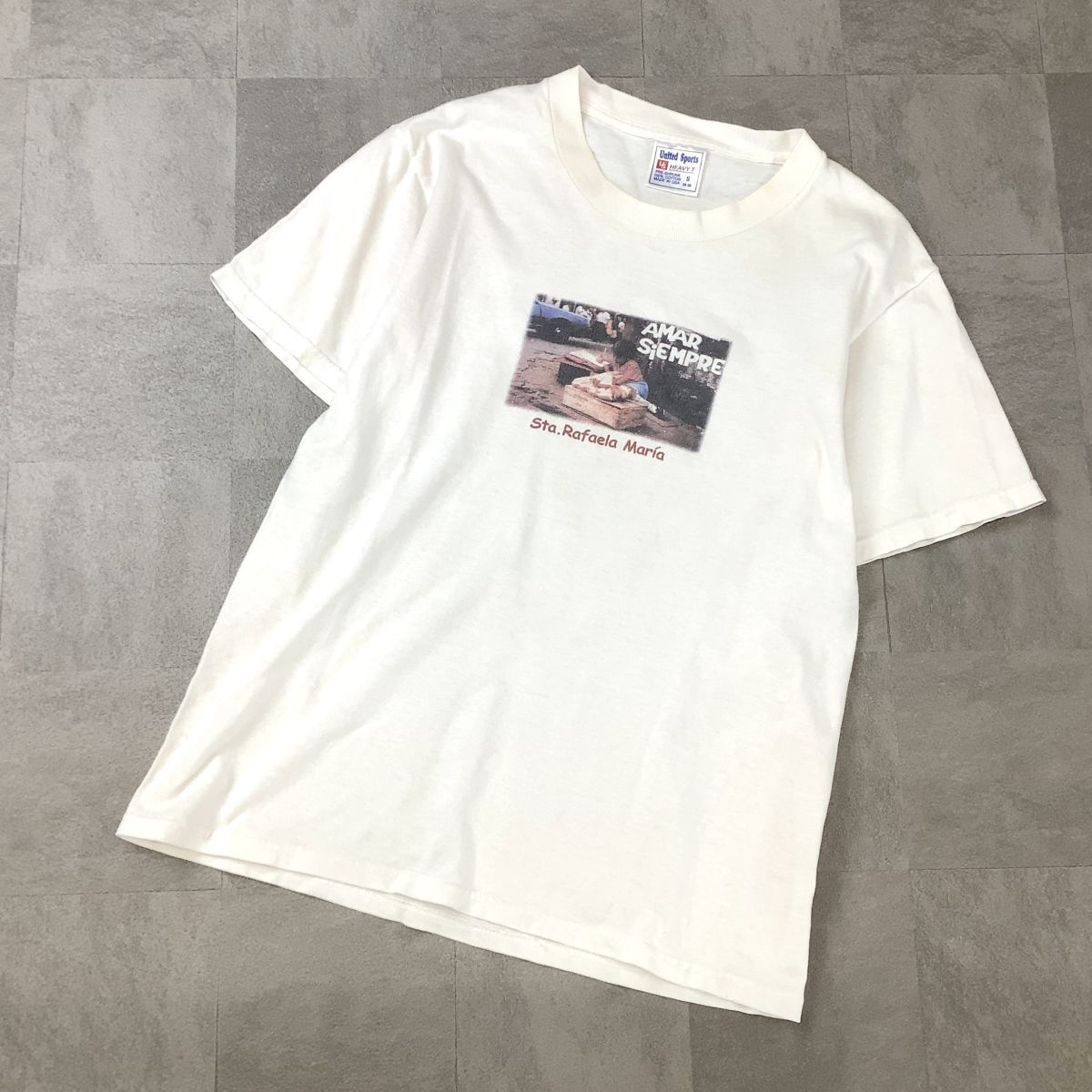 - 90’s USA製 United sports ヘビーウエイト プリント 半袖 tシャツ メンズ S ホワイト