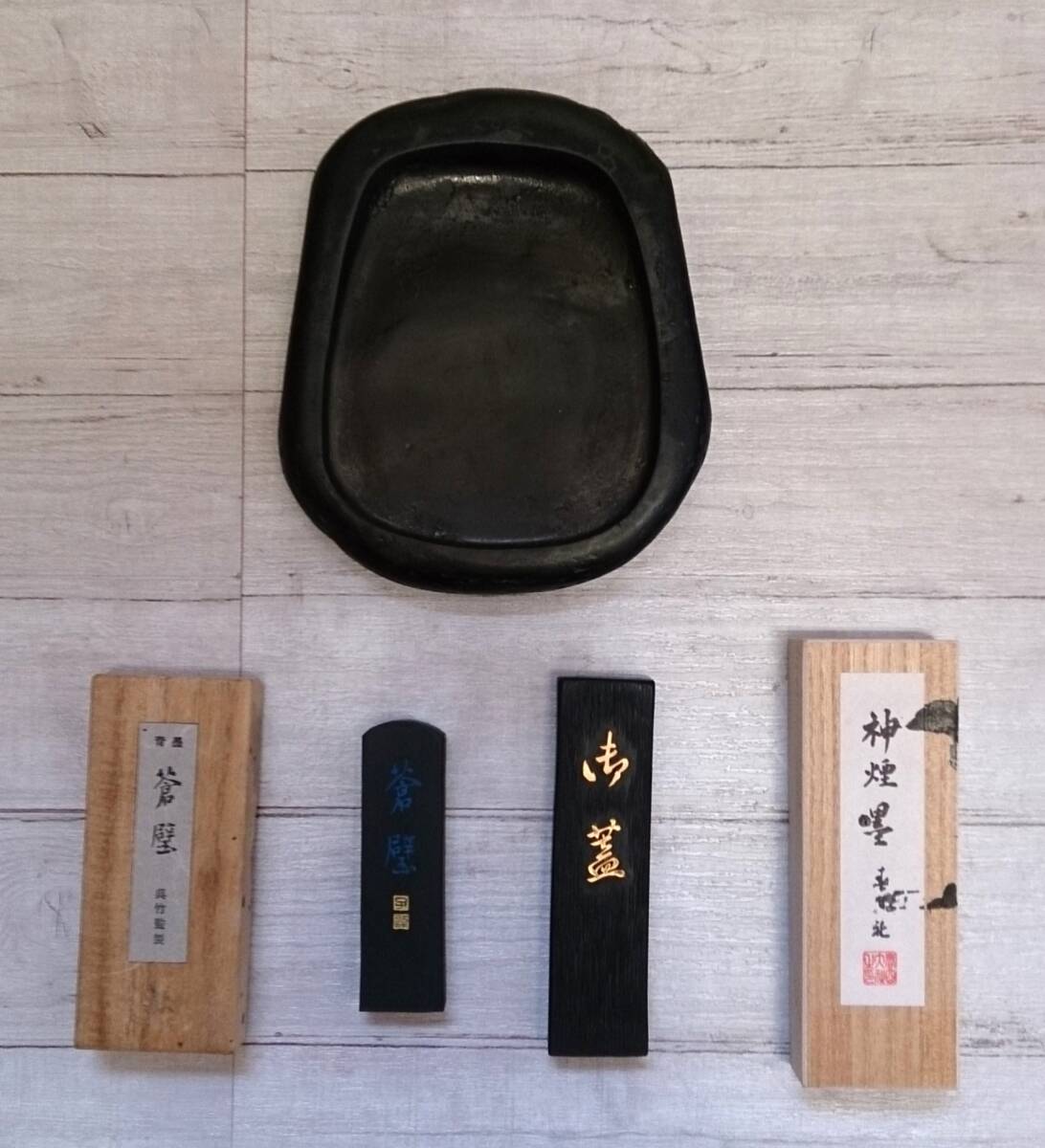 - 【佐川発送】メーカー複数 硯1点・固形墨2点 計3点まとめ売り 01