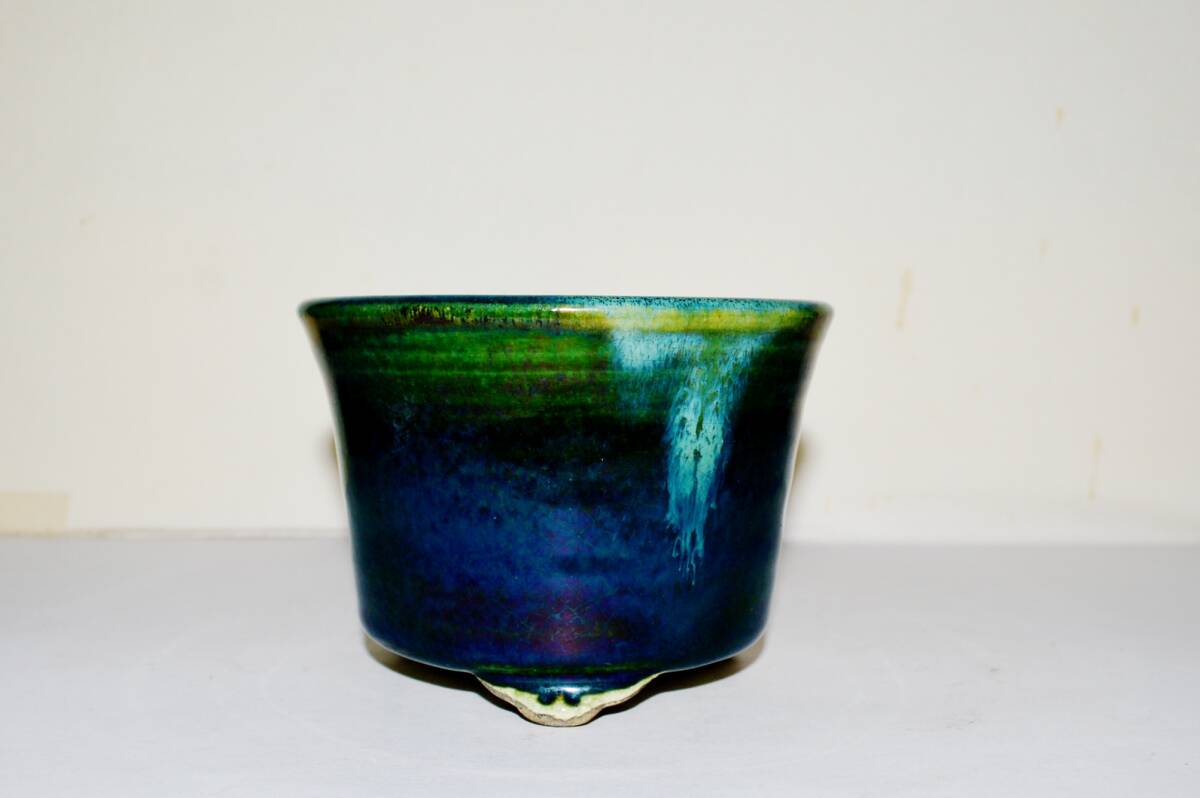 - 特注品・人気品薄和鉢作家 「加藤里美(寺畑さとみ)」 寺畑陶園 氷裂織部釉に白釉 雲足丸懸崖形の鉢
