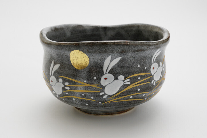 - 九谷焼! ☆跳ねうさぎ・抹茶碗☆ K9-850 新品 茶道具 茶器 ギフト