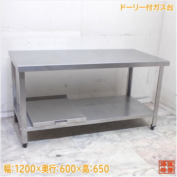 - ステンレス ドーリー付ガス台 1200×600×650 コンロ台 中古厨房/25H0720Z