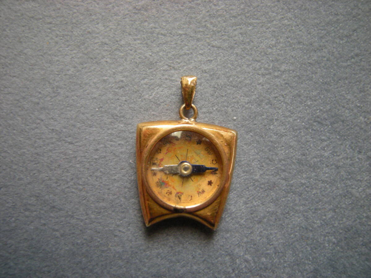 - 懐中時計用 彫金飾り くさり 鎖用 飾り 方位磁石 K18刻印... 2174 精工舎