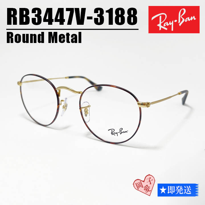 > ★47サイズ★RB3447V-3188★新品 RayBan レイバン ROUND METAL ラウンドメタル フレーム 眼鏡 メガネ マットハバナ アリスタ ゴールド