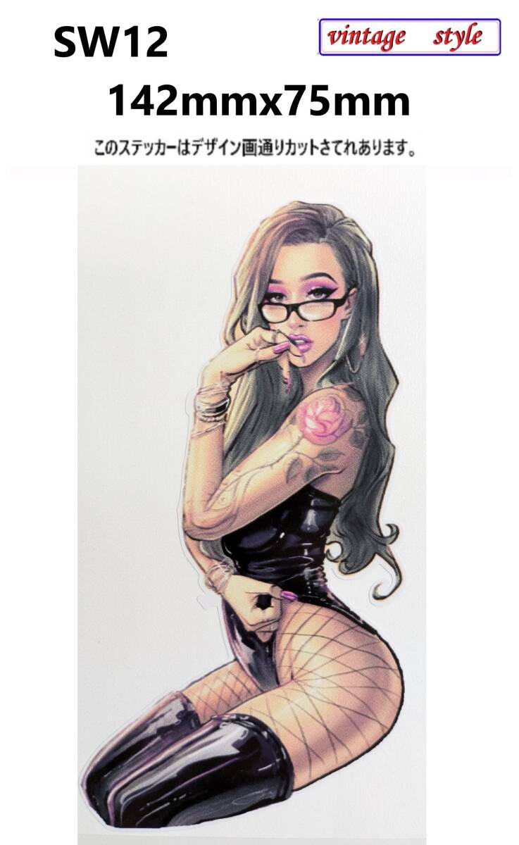 - SW12-02 特価 美人 セクシー&クール 眼鏡 タトゥー 刺青 レトロ セクシーステッカー ボード ギター デカール