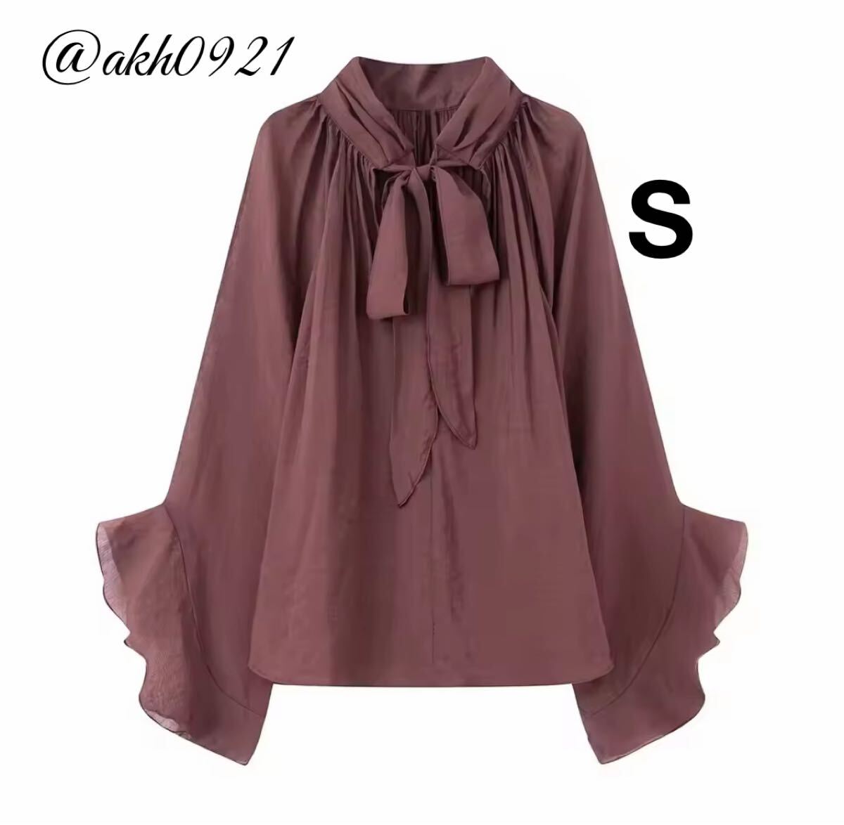 - 新品未使用★2025 A/W 秋新作★vintage ヴィンテージ レトロ リボン ボウタイ ブラウス トップス Sサイズ レディース★ZARA 好きな方に