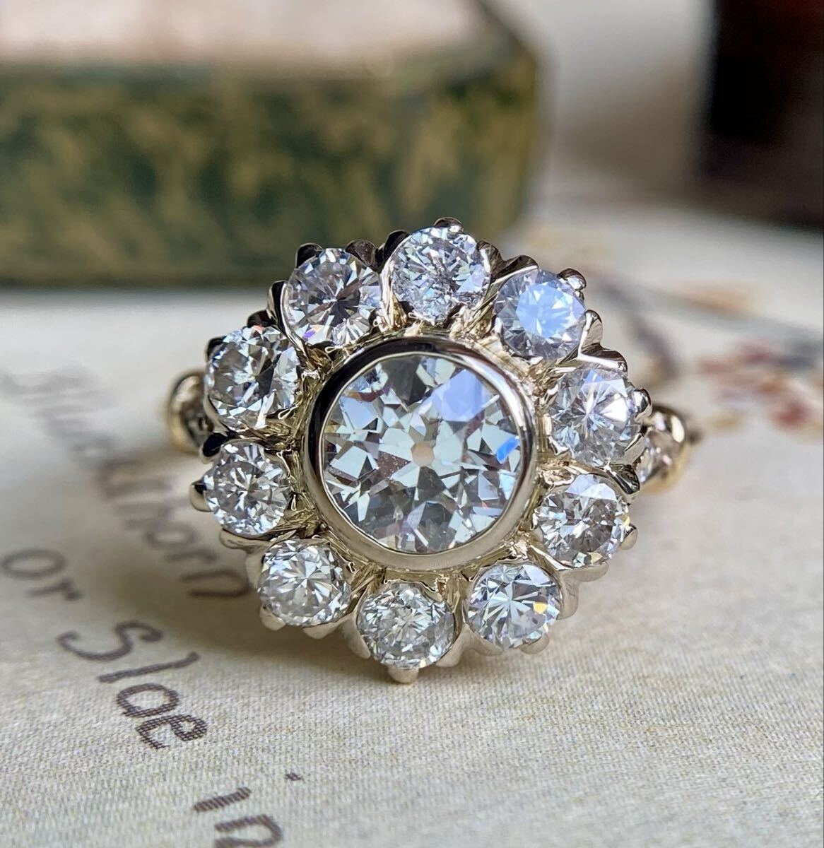 > k18 フランス製 アンティーク ベルエポック オールドヨーロピアンカットダイヤモンドリング 指輪