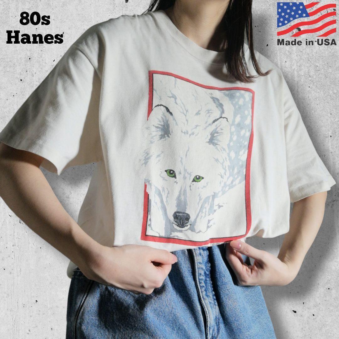 > 80s USA製 Hanes BEEFY-T ヘインズ ビーフィーT アニマル ヴィンテージTシャツ 白T 半袖 シングルステッチ 1989年 コピーライト 古着 1661