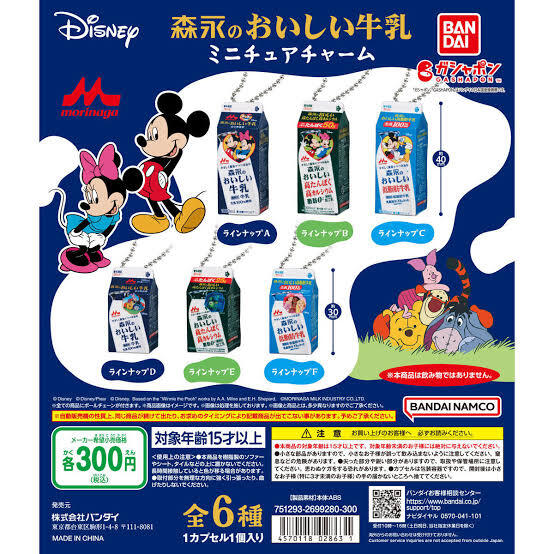 - Disney 森永のおいしい牛乳 ミニチュアチャーム 全6種セット