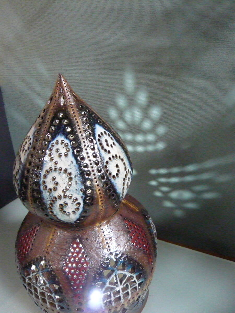 - ひょうたんランプ 照明カバー 7kg 焼き物 オブジェ 置物 中古