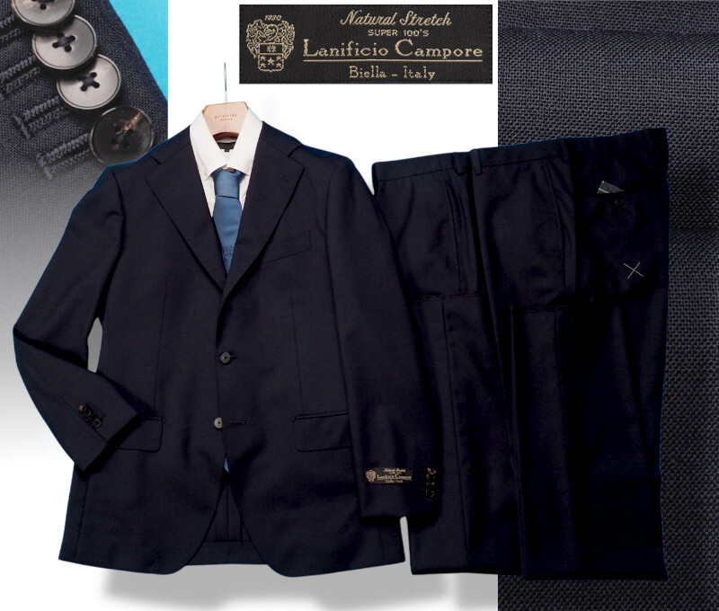 - 新品訳 大手スーツ専門店展開 春夏『Lanificio CAMPORE イタリア製生地』無地 ツーパンツ スーツA4紺(M)0633432