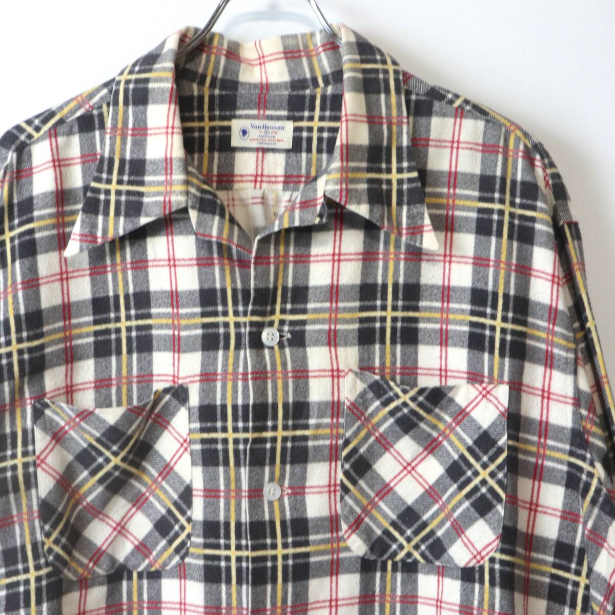 > XL 50s Van Heusen Printed Flannel Open Collar Shirt ヴァンヒューセン プリネル フランネル 開襟 シャツ 長袖 マチ ヘビネル vintage