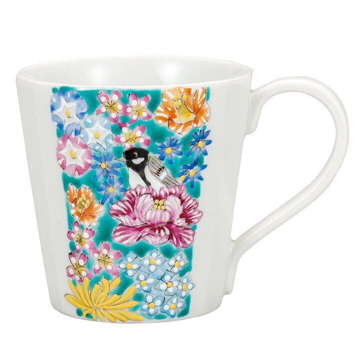 - 九谷焼! 新川敦子 ☆小鳥花詰マグカップ☆ K9-997 新品 茶器 コーヒー 紅茶 ミルク ラテ エスプレッソ カプチーノ ギフト