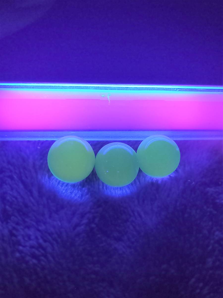 > 希少 昭和レトロ ウランガラス ビー玉 3個セット 中玉 約1.48mm 気泡 シワ ヘソ ビードロ 個体差あり 装飾 インテリア 光る 発光 おもちゃ