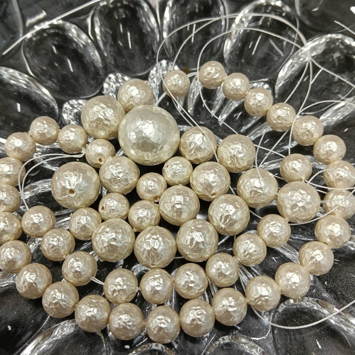- ☆未使用 大量 コットンパール ビーズ ラウンド 約22g 8~16mm 薄いベージュ系 ヴィンテージ ハンドメイド ネックレス 手芸 パーツ S-356