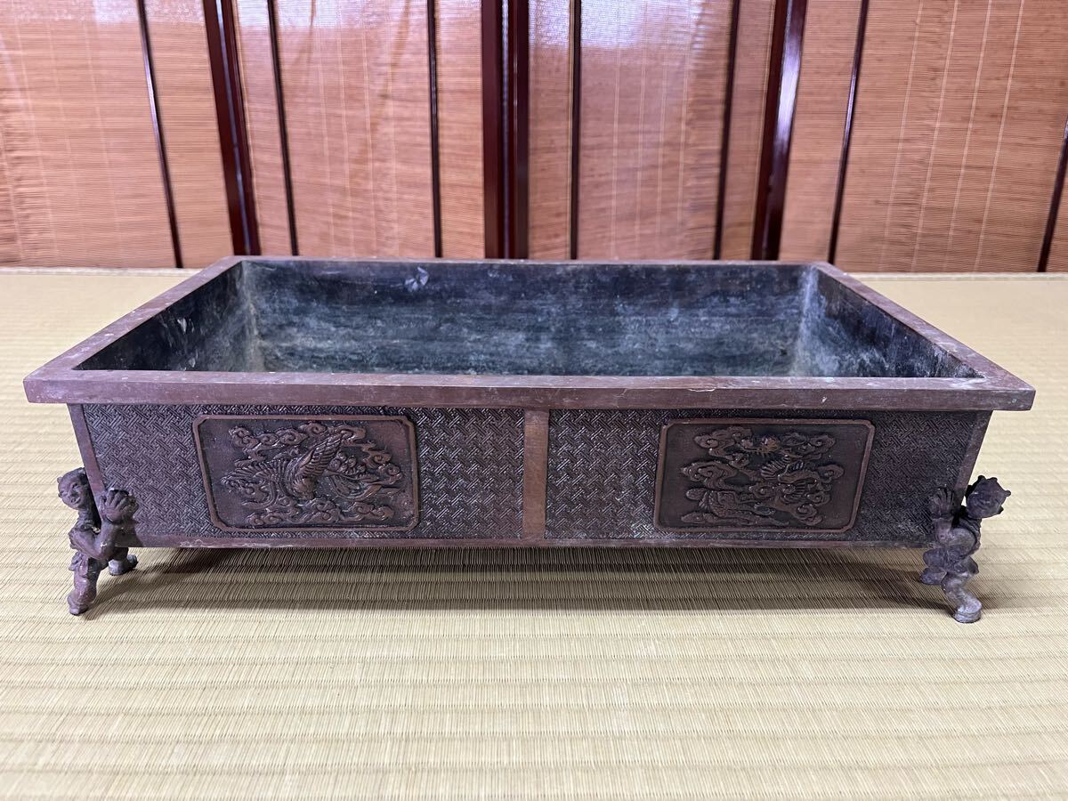 - 大日本文政年整珉鋳 唐銅 水盤 四聖獣 花器 盆栽 華道 鉢 村田整珉 時代物 旧家 蔵出し品