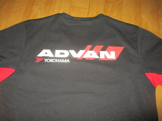 - ヨコハマタイヤ・アドバン デカロゴ VネックドライTシャツ 美中古 サイズL(タグなし) ネオバ・スーパーGT・旧車・スーパーGT