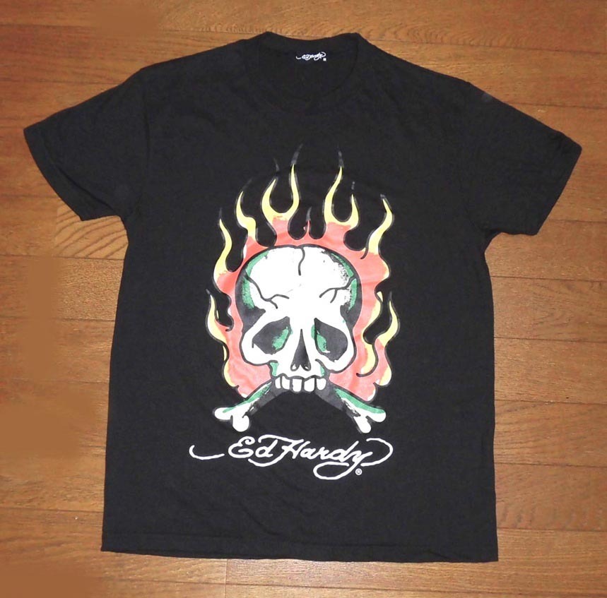 - ED HARDY エド ハーディー Tシャツ 半袖 FIRE SCULL ファイヤー スカル E-COM正規品 BLK M ほぼ未使用 美品/クリスチャンオードジェー