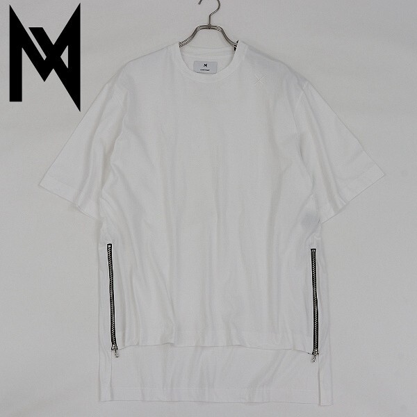 - 【HA120】◆MOONAGE DEVILMENT ムーンエイジ デビルメント 1.2万 コットン ZIP オーバーTee ジップデザイン 刺繍 半袖 Tシャツ ホワイト 44