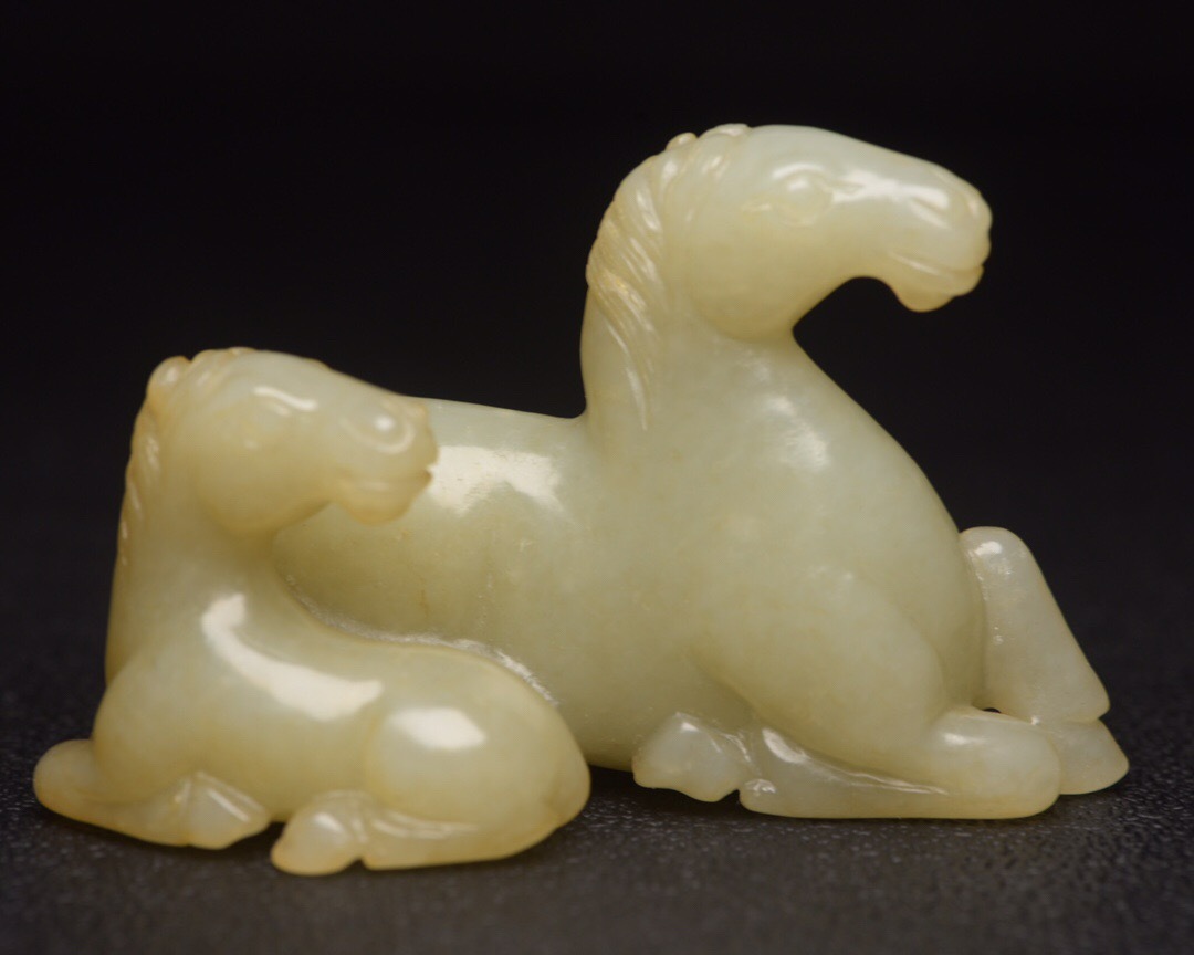 - ▽鴻▽ 和田玉製 細密彫 雙馬 置物 賞物 古賞物 古董品 時代物 稀少珍品 中国古玩 中国古美術