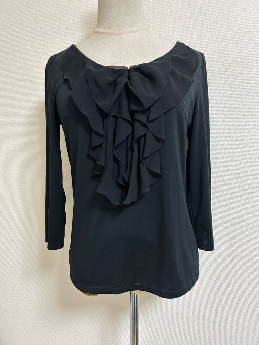 - 美品★ミッシェルクランフリル付き黒五分袖カットソートップス★9950